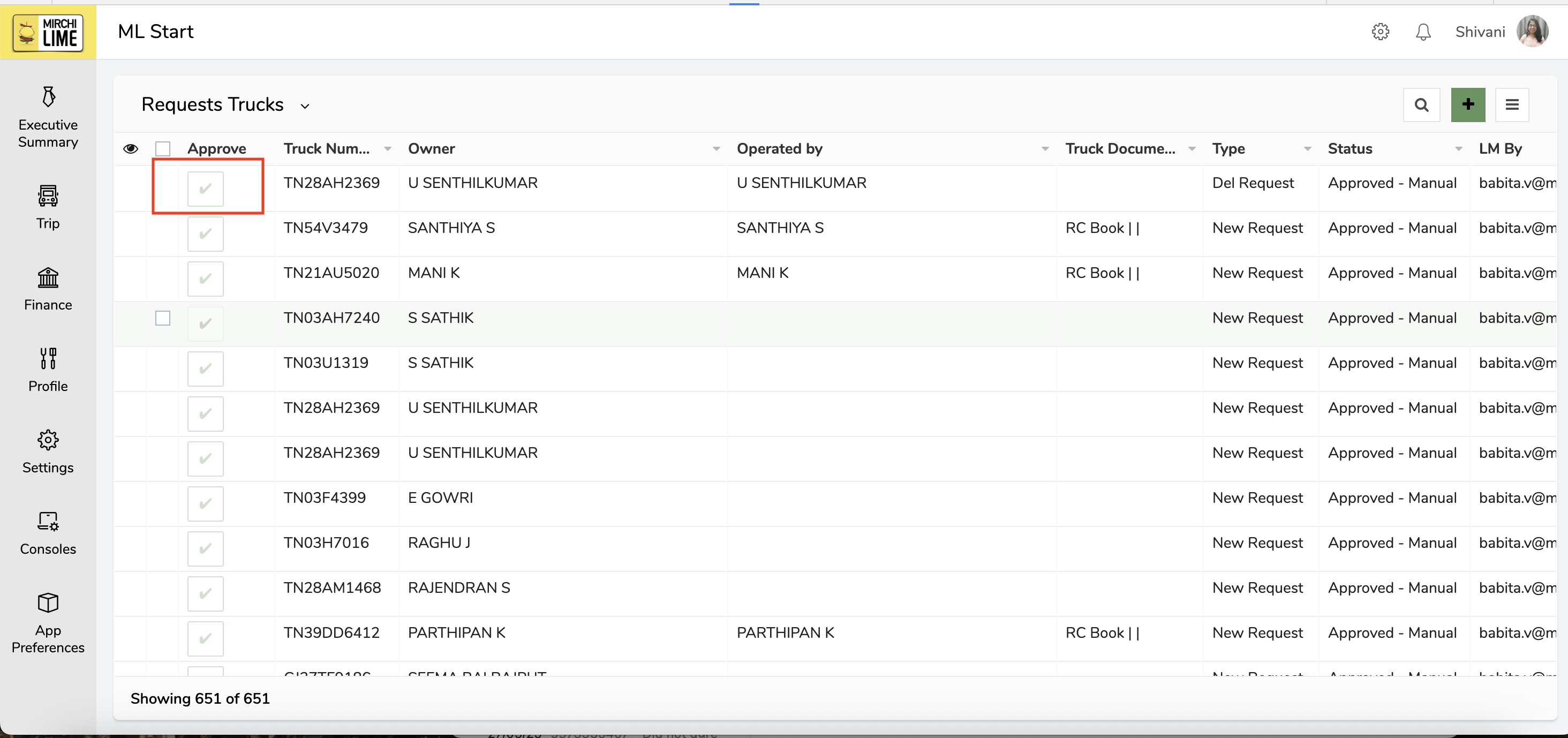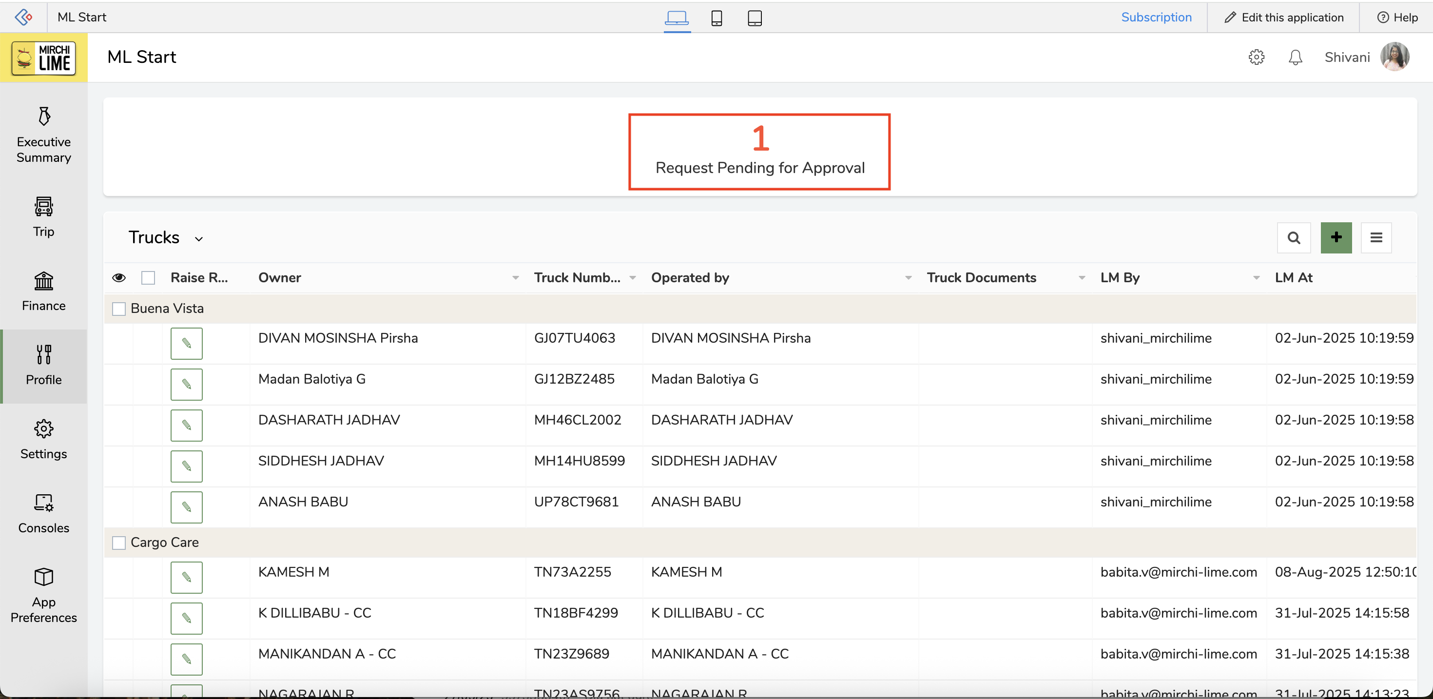 Go to Profile → Trucks → Requests Pending for Approval.